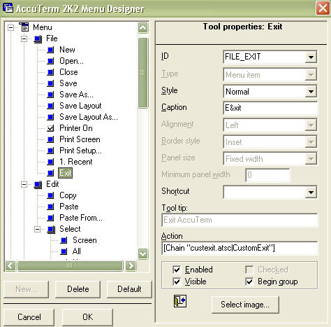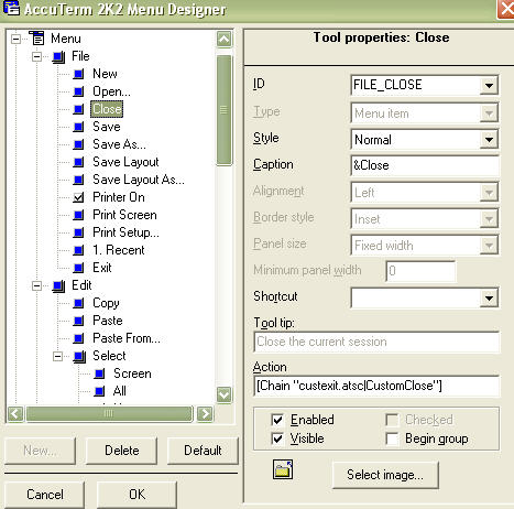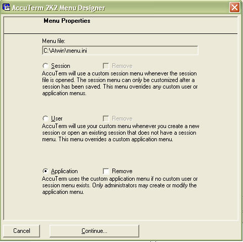 First, download custexit.atsc and save in your Atwin directory. This is the script that we are going to tell AccuTerm to run if someone clicks on the session X or the AccuTerm X.